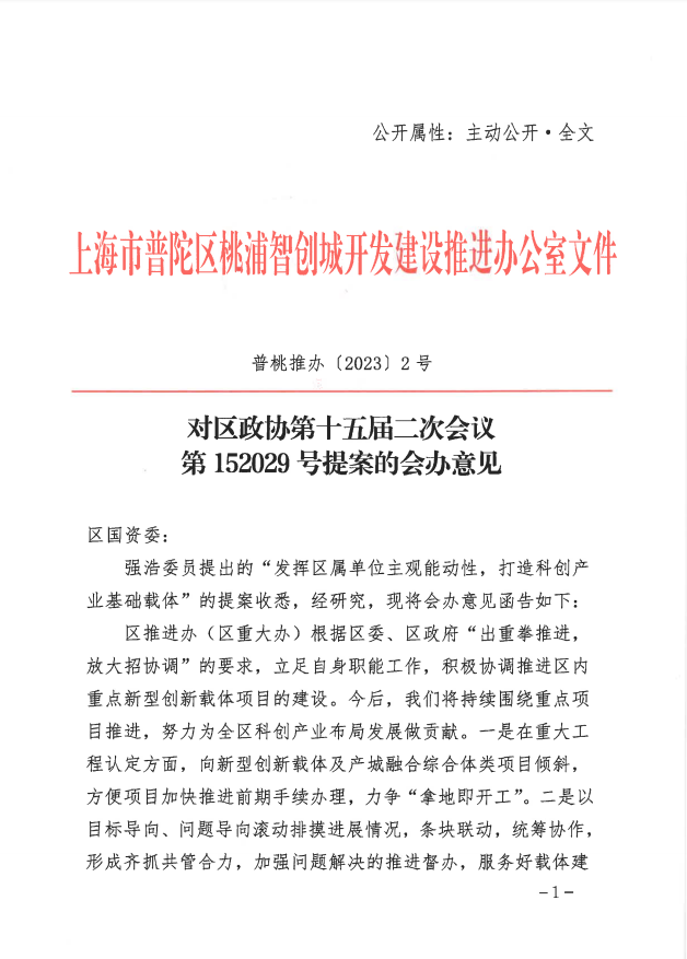 强浩委员提出的“发挥区属单位主观能动性,打造科创产业基础载体”的提案收悉,经研究,现将会办意见函告如下: