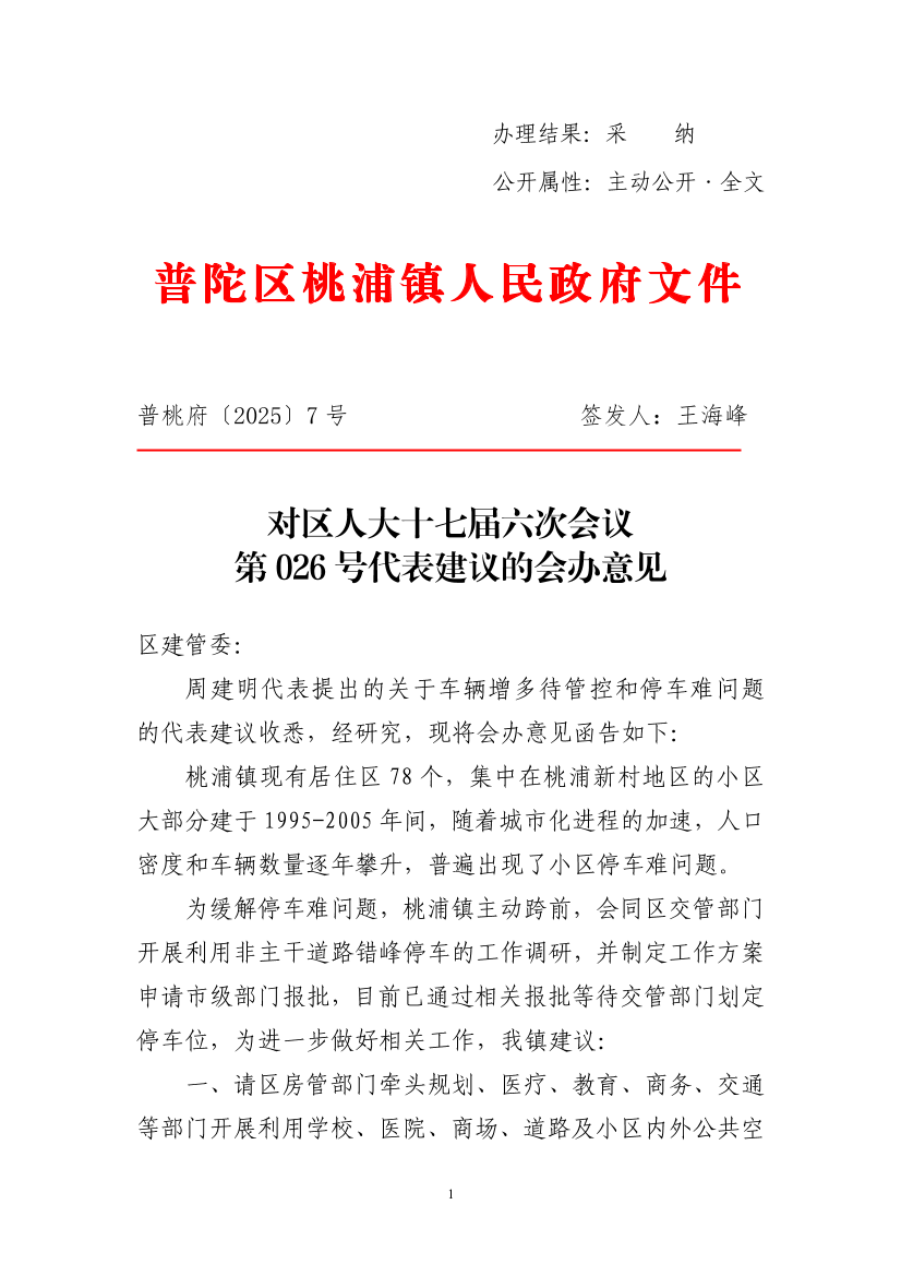 为缓解停车难问题,桃浦镇主动跨前,会同区交管部门开展利用非主干道路错峰停车的工作调研,并制定工作方案申请市级部门报批,目前已通过相关报批等待交管部门划定停车位,为进一步做好相关工作,我镇建议: