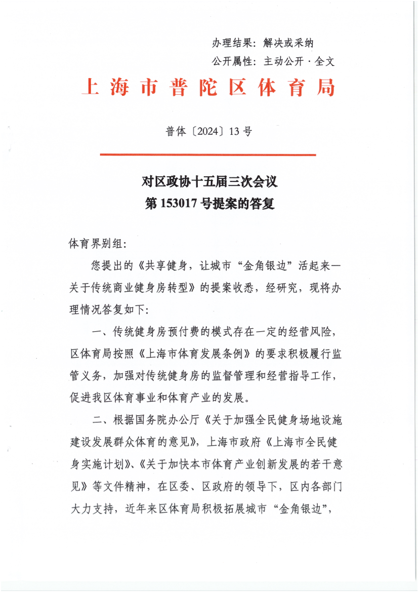 您提出的《共享健身,让城市“金角银边”活起来—关于传统商业健身房转型》的提案收悉,经研究,现将办理情况答复如下: