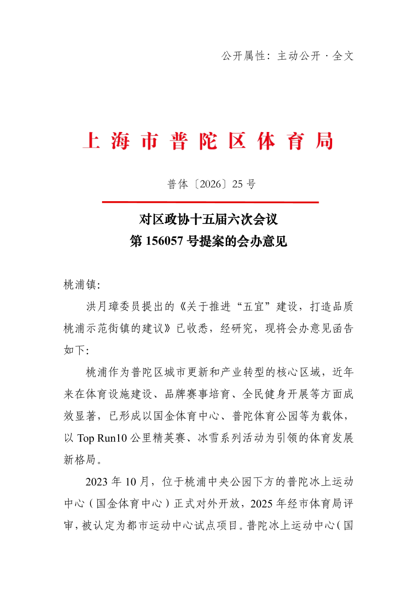洪月璋委员提出的《关于推进“五宜”建设,打造品质桃浦示范街镇的建议》已收悉,经研究,现将会办意见函告如下: