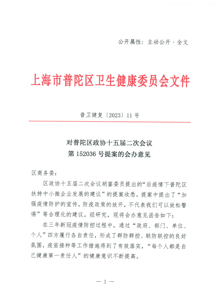 对普陀区政协十五届二次会议第152036号提案的会办意见