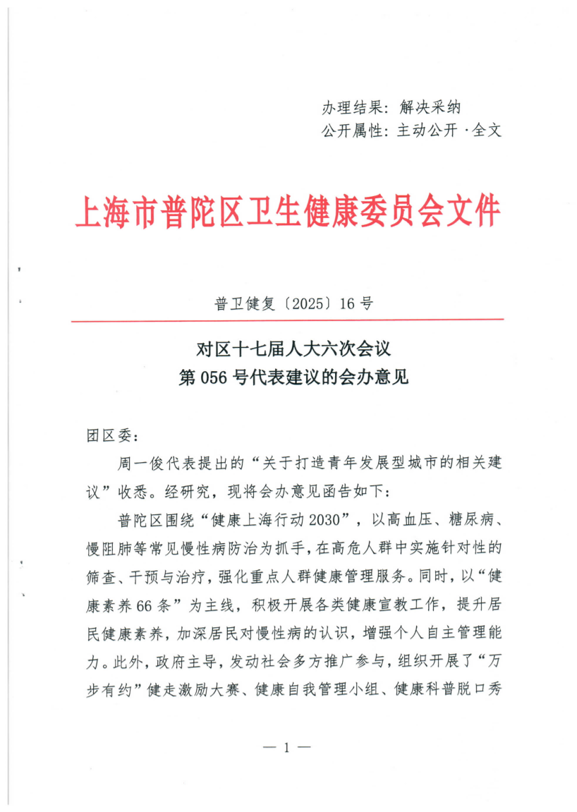 周一俊代表提出的“关于打造青年发展型城市的相关建议”收悉。经研究,现将会办意见函告如下: