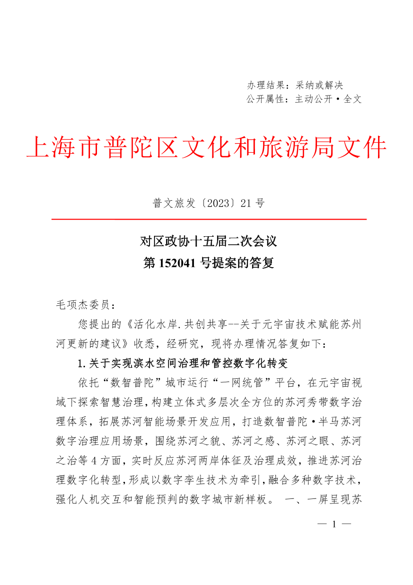 您提出的《活化水岸.共创共享--关于元宇宙技术赋能苏州河更新的建议》收悉,经研究,现将办理情况答复如下: