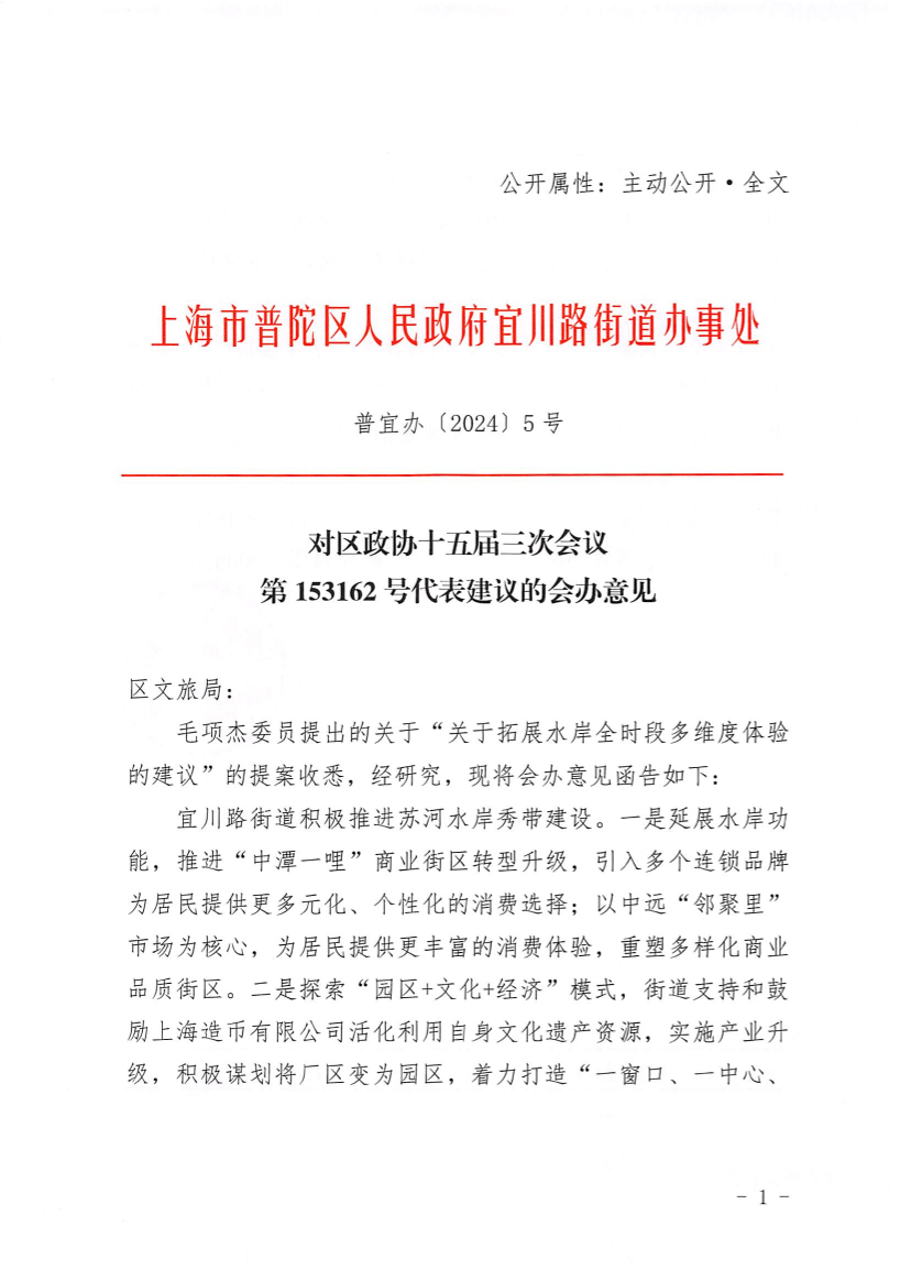 毛项杰委员提出的关于“关于拓展水岸全时段多维度体验的建议”的提案收悉,经研究,现将会办意见函告如下: