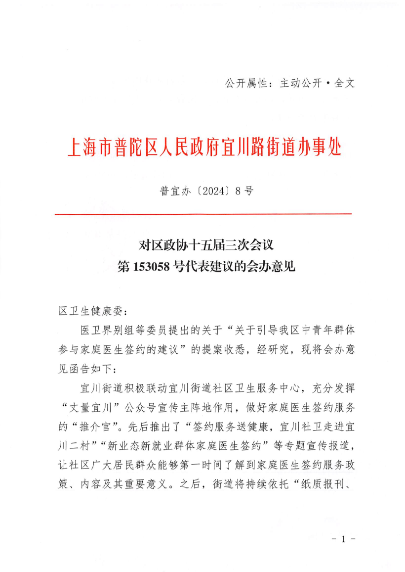医卫界别组等委员提出的关于“关于引导我区中青年群体参与家庭医生签约的建议”的提案收悉,经研究,现将会办意见函告如下: