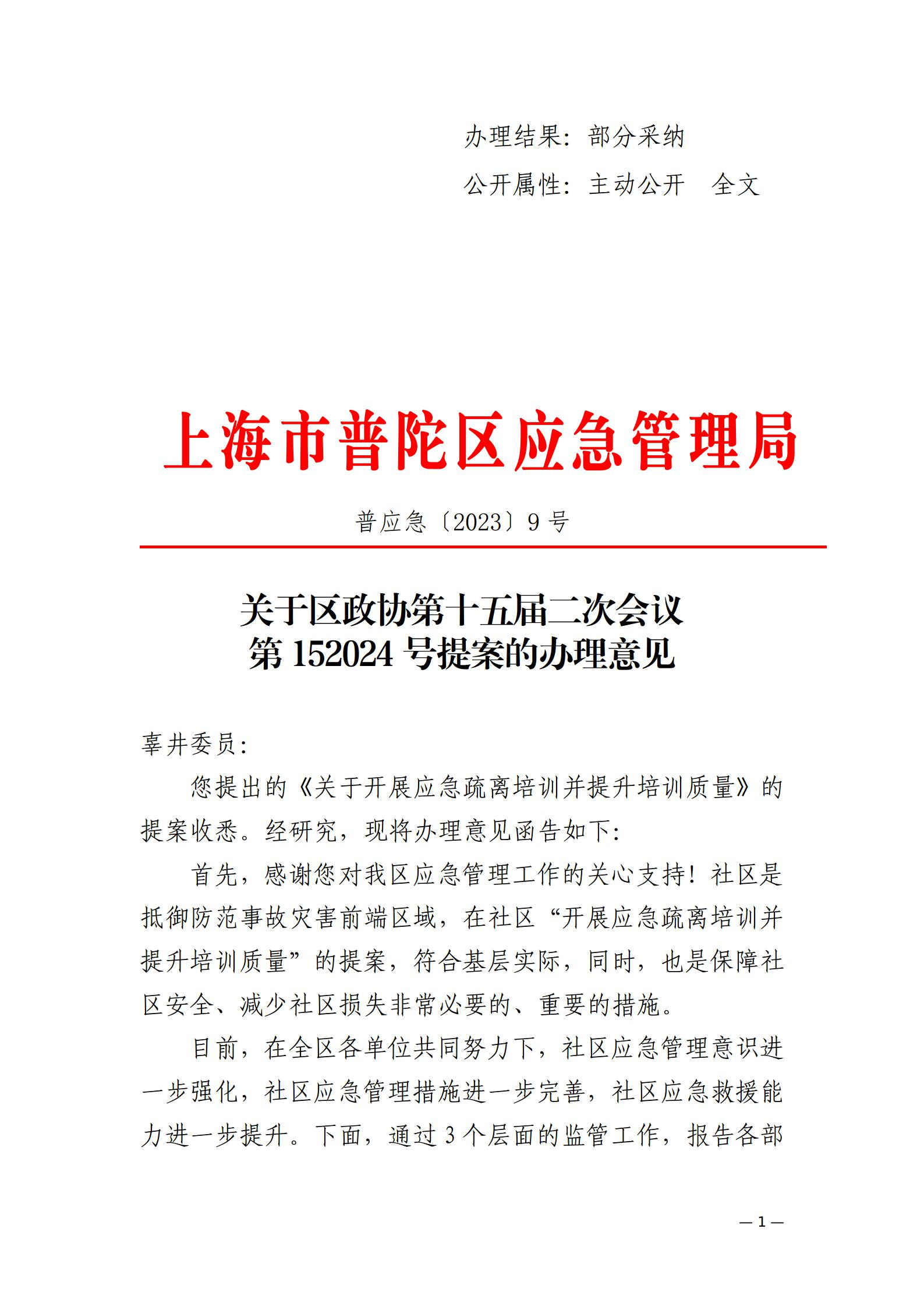 关于区政协第十五届二次会议第152024号提案的办理意见