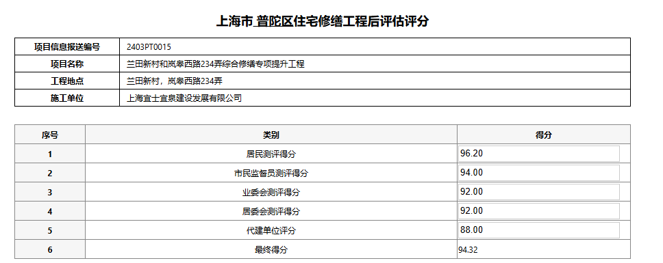 关于兰田新村和岚皋西路234弄综合修缮专项提升工程后评估考核公示