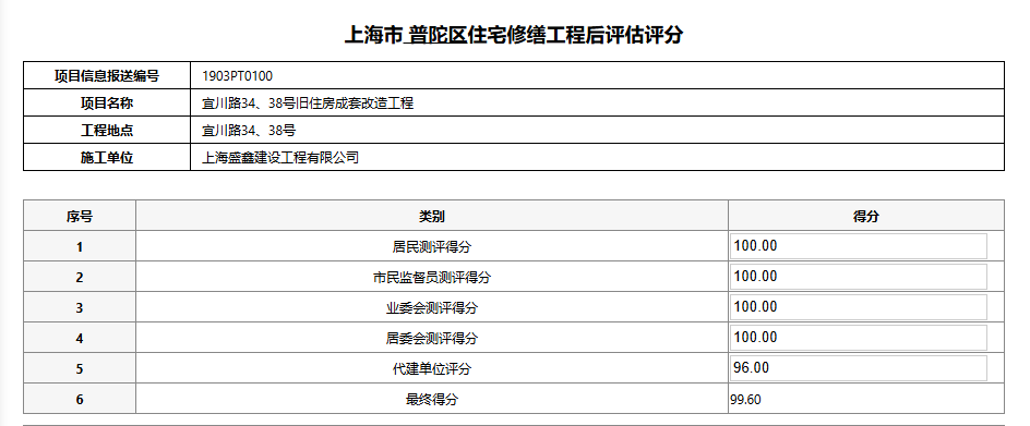 关于宜川路34、38号旧住房成套改造工程后评估考核公示