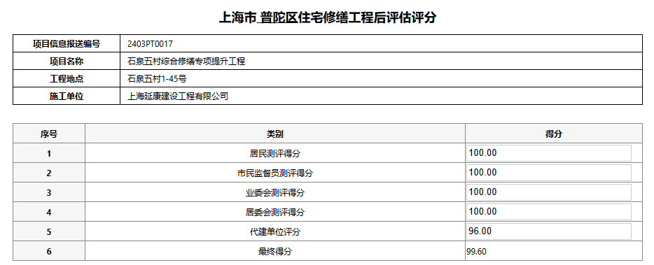 关于石泉五村综合修缮专项提升工程后评估考核公示