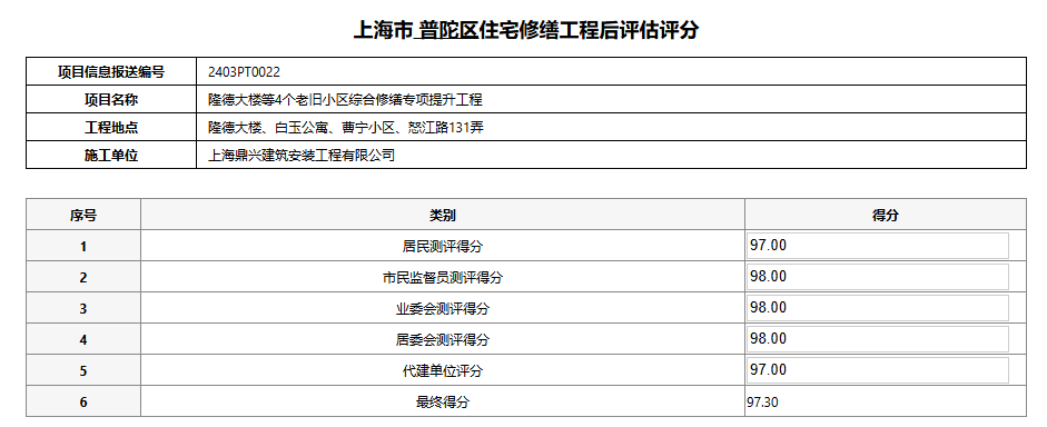 关于隆德大楼等4个老旧小区综合修缮专项提升工程后评估考核公示