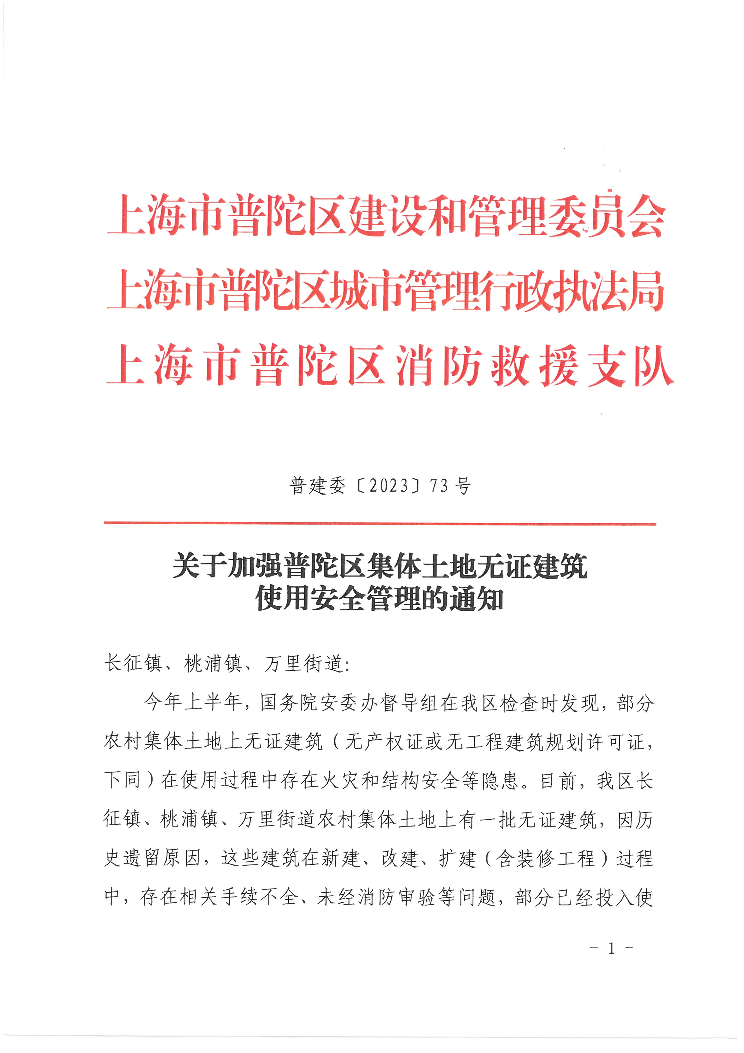 关于加强普陀区集体土地无证建筑使用安全管理的通知