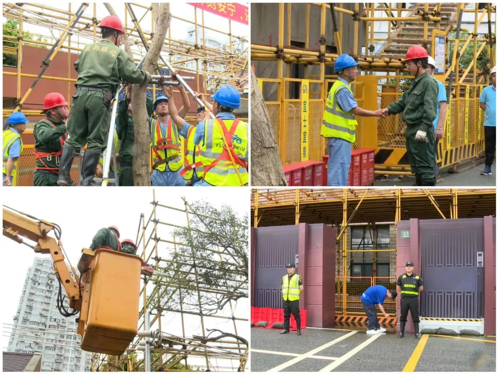 演练内容全面而细致,涵盖了4个关键方面。首先,专业技术人员对高层建筑的防护棚和吊篮进行了细致检查,确保其在台风来临前能够稳固防御强风侵袭。随后,针对暴雨天气可能带来的排水问题,专业队伍迅速行动,对社区内的污水管道进行了疏通,有效避免因积水引发的内涝问题。与此同时,西部集团应急抢修队伍在小区单元入口处架设沙袋、防汛挡板等物资设备预防积水进入单元门洞内,防止居民财产受到损失。最后,针对强风可能导致的大树倒伏风险,救援队伍展示了快速扶正和加固大树的专业操作,有效预防了次生灾害的发生。