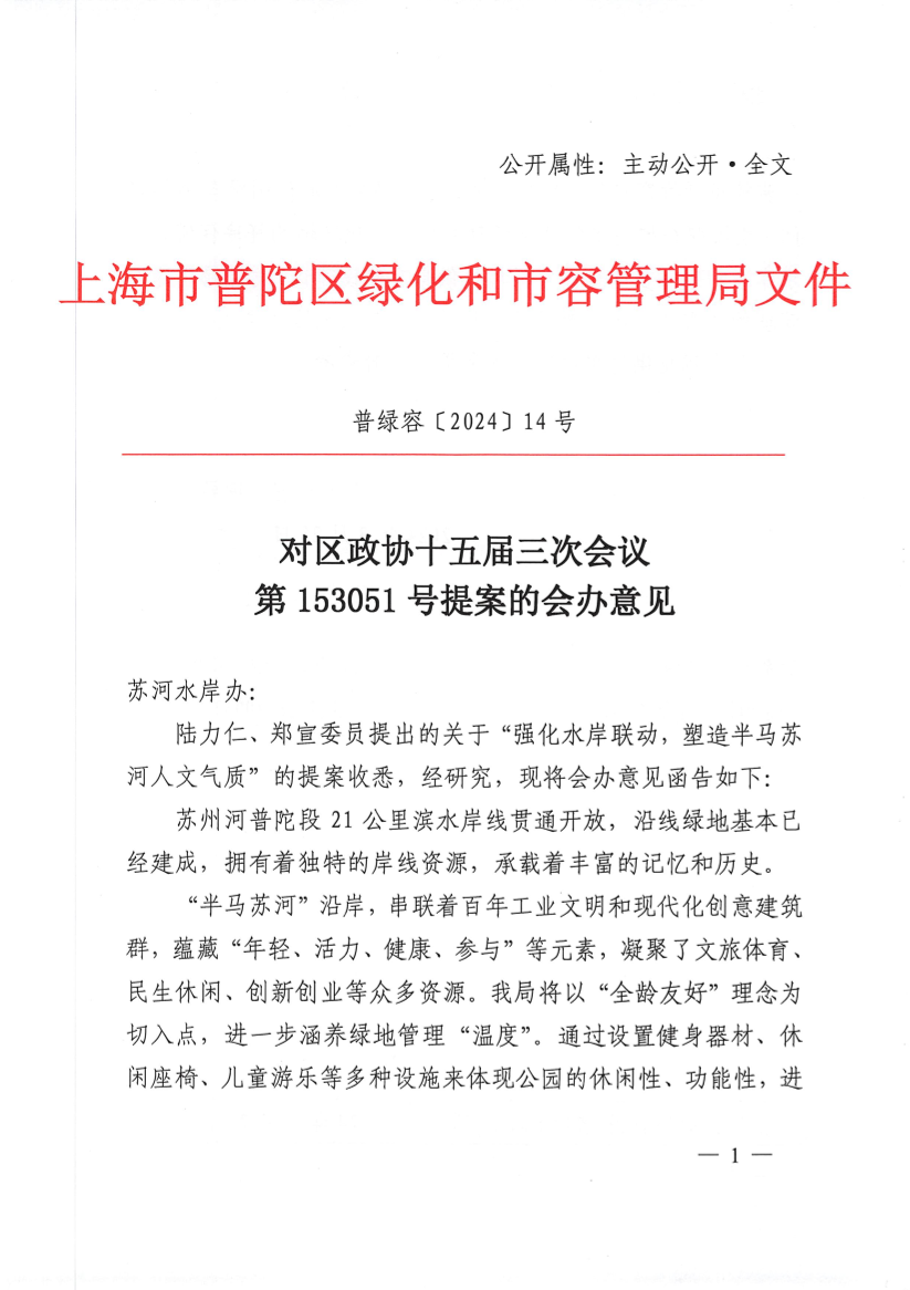 陆力仁、郑宣委员提出的关于“强化水岸联动,塑造半马苏河人文气质”的提案收悉,经研究,现将会办意见函告如下: