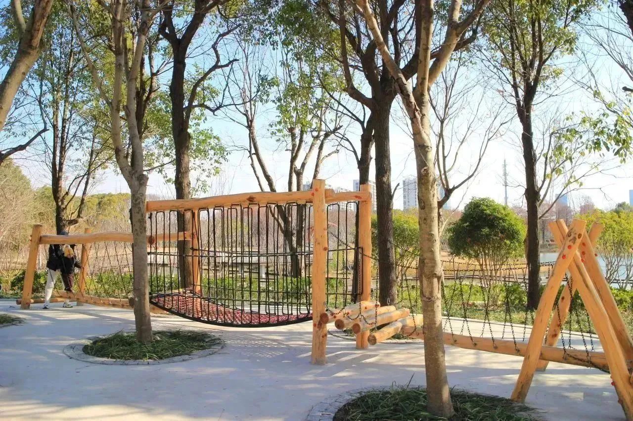 公园设置了水下栈道、水面栈道和浮桥、空中景观栈桥,为游客提供了立体多元的观景位置,沙坑等儿童游乐设施也成为孩子们热衷的游戏场所。