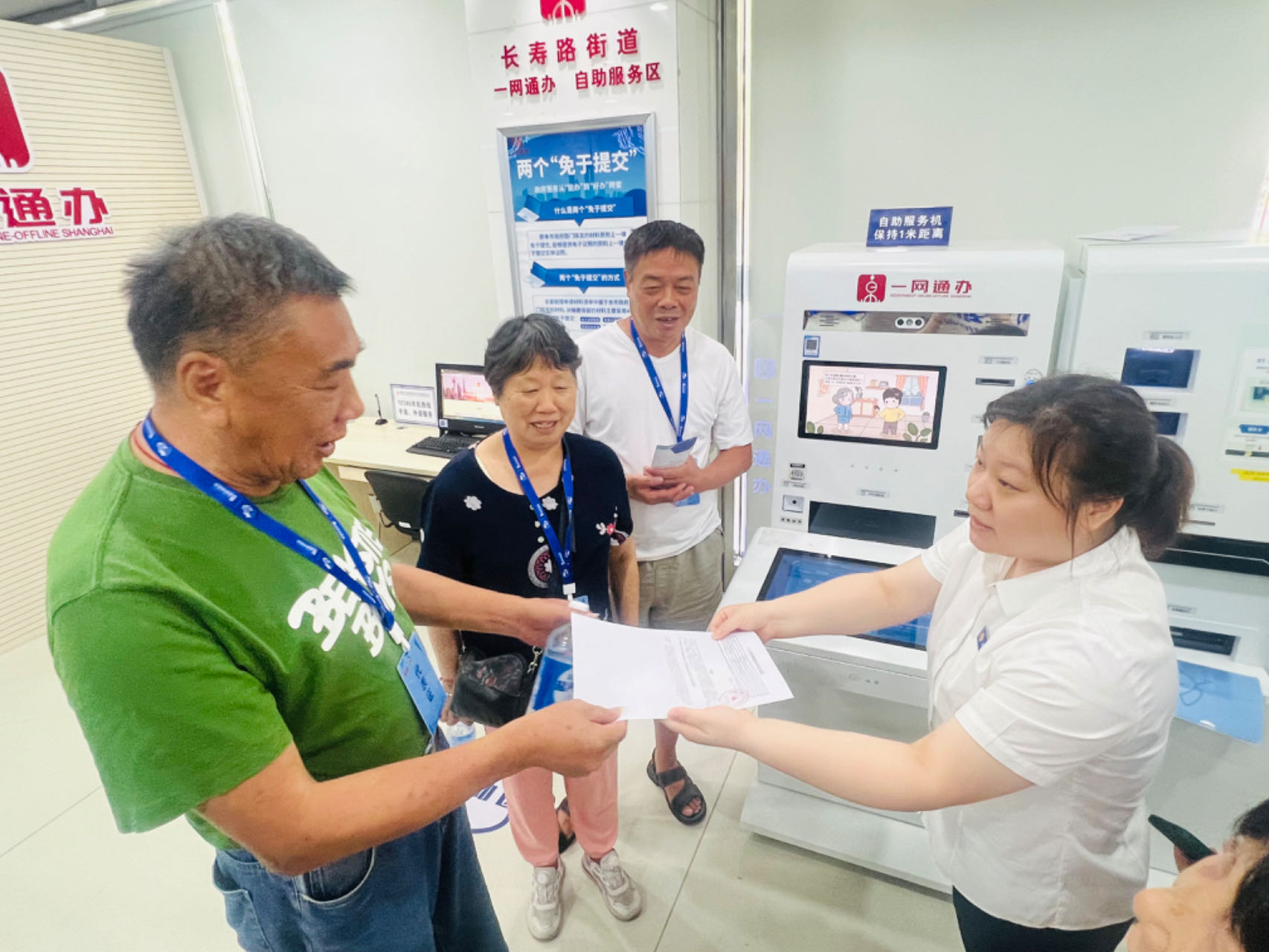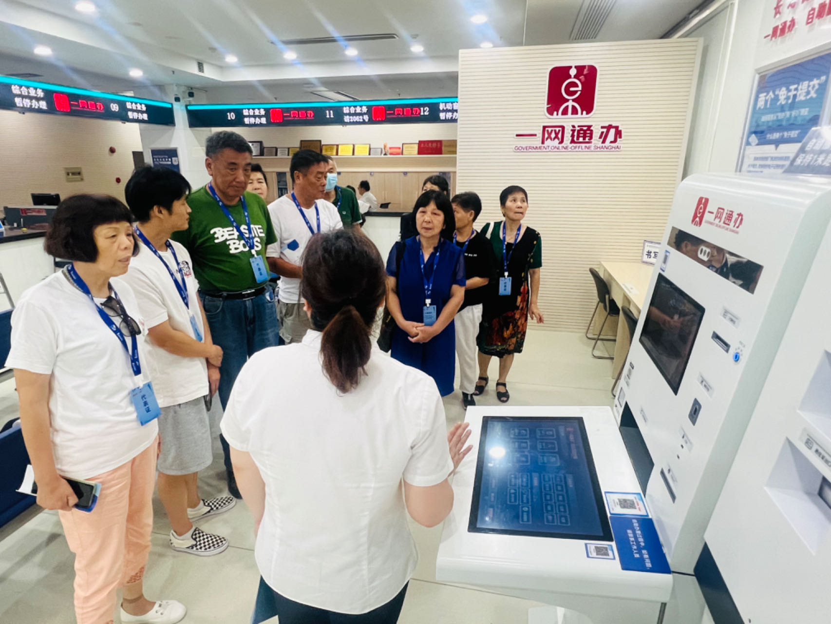 在工作人员的带领下,公众代表们实地参观了长寿社区事务受理服务中心,进一步了解了街道受理服务的工作流程、“一网通办”政务服务自助机热门办理项目等,并通过观看受理服务中心大屏滚动播放的内容,对“一网通办”“高效办成一件事”等群众关心的办事项目和政策有了更深刻的认识。