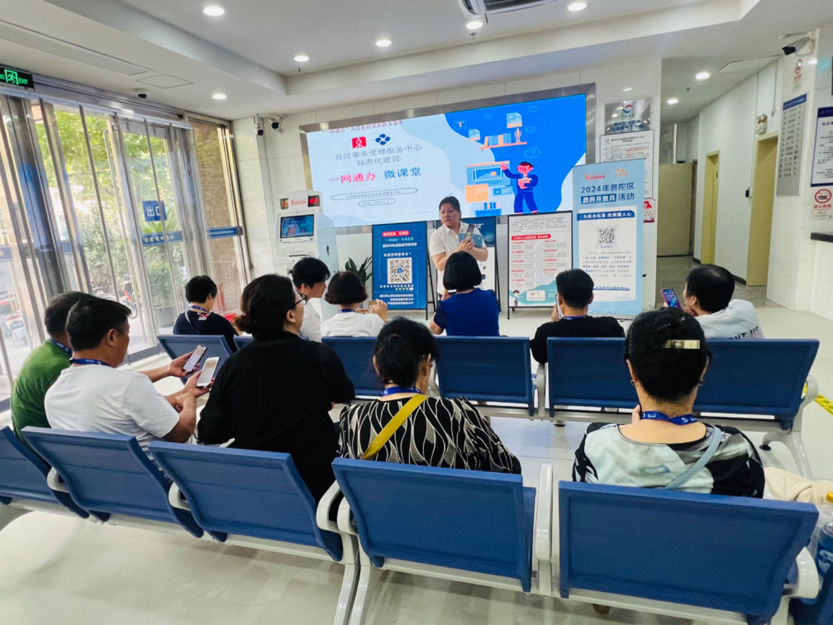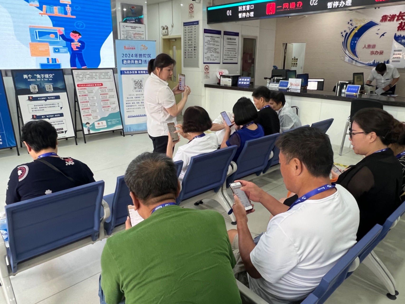 街道主要领导高度重视本次开放月活动,办事处主任沈捷来到社区事务受理服务中心,化身为“帮办员”,现场为群众讲解和办理政务服务事项。