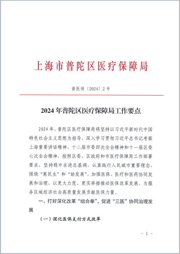 2024年,普陀区医疗保障局将坚持以习近平新时代中国特色社会主义思想为指导,深入学习贯彻习近平总书记考察上海重要讲话精神、十二届市委四次全会精神和十一届区委七次全会精神,按照区委、区政府和市医疗保障局工作部署要求,坚持稳中求进工作总基调,认真践行人民城市重要理念,围绕“惠民生”和“助发展”,加强医保、医疗和医药协同发展和治理,以更大力度、更实举措推动医保改革发展,为服务区域经济社会高质量发展贡献医保力量。