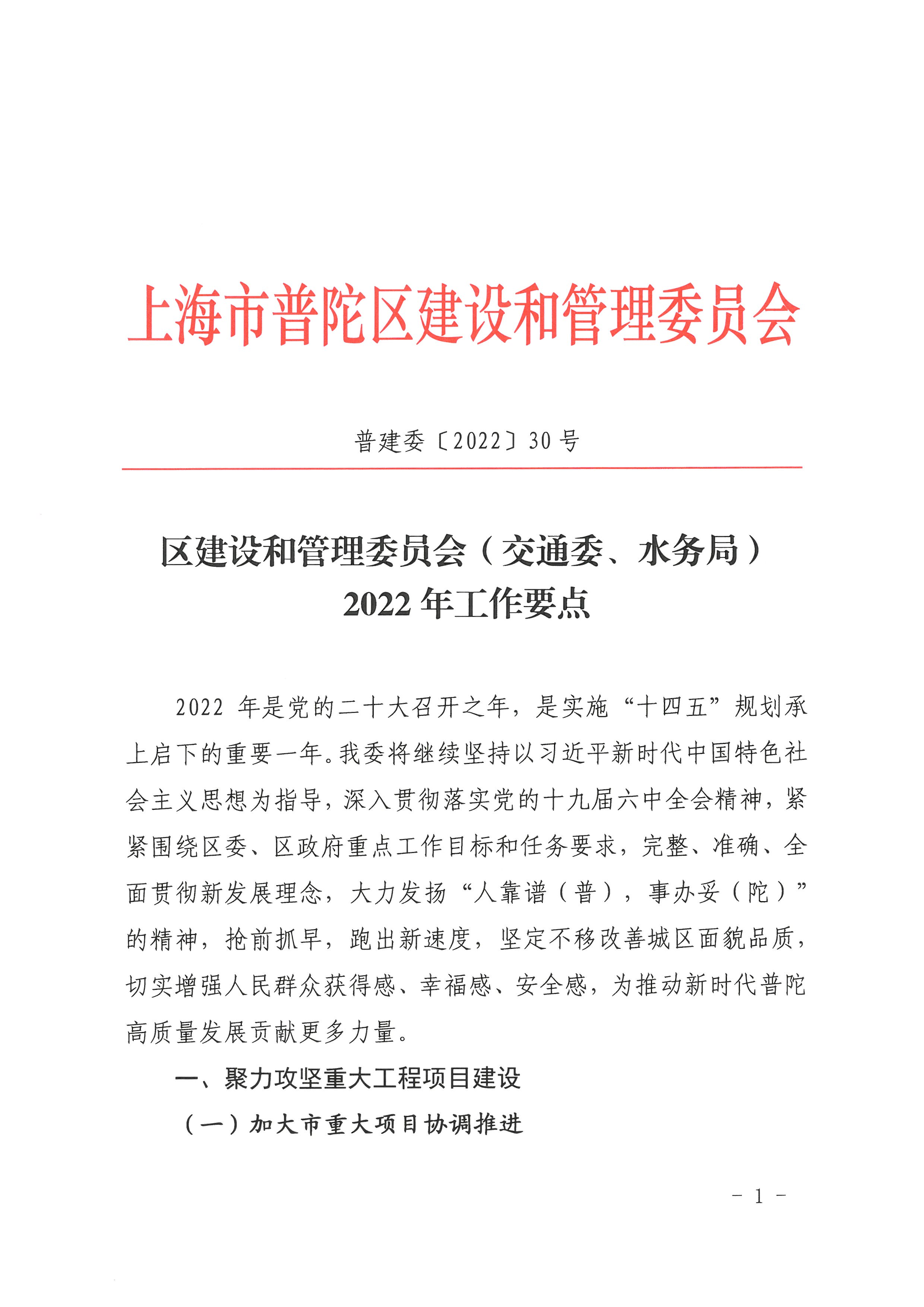 区建设和管理委员会(交通委、水务局)2022年工作要点