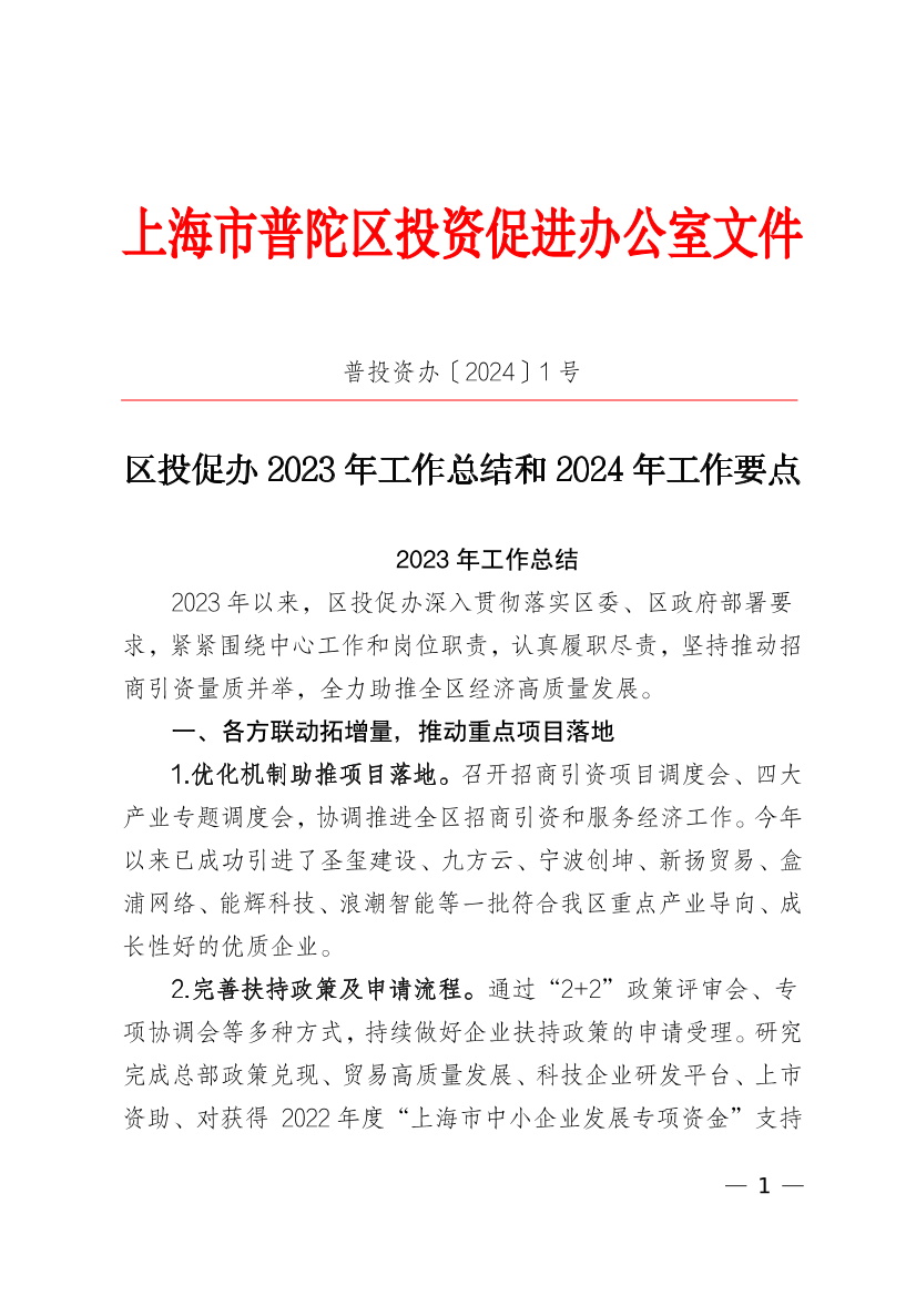 一是围绕科技创新、产业发展、前瞻布局等重点内容开展设计制作,用好新媒体宣传形式,制作一批更具有记忆点和实用性的宣传材料。用好线上线下各类宣传途径,多渠道、全方位展开宣传工作,持续扩大宣传范围,助力展示“人靠谱(普)、事办妥(陀)”的营商环境。二是拓宽多渠道招商引资,继续加强对专业招商机构的走访联系,提高招商信息获取的质量与成效。积极与“五大行四大所”等专业机构建立深度合作关系,为全区产业升级提供外部支持。三是完成“双月签”重点项目集中签约会活动;积极参与或组织进博会、工博会、“走进普陀”活动等大型活动,大力推介普陀区优质营商环境;做好组织异地推介活动的各项准备,扩大普陀区招商引资影响力。