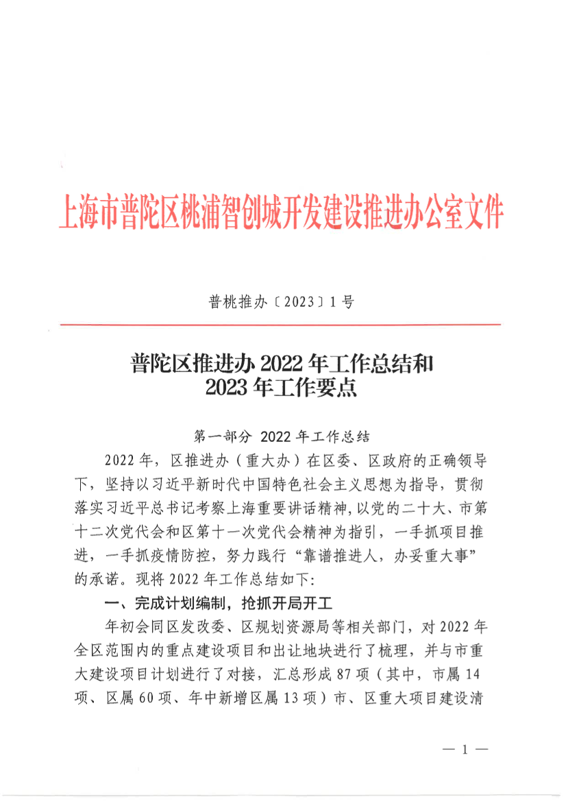 普陀区推进办2022年工作总结和2023年工作要点