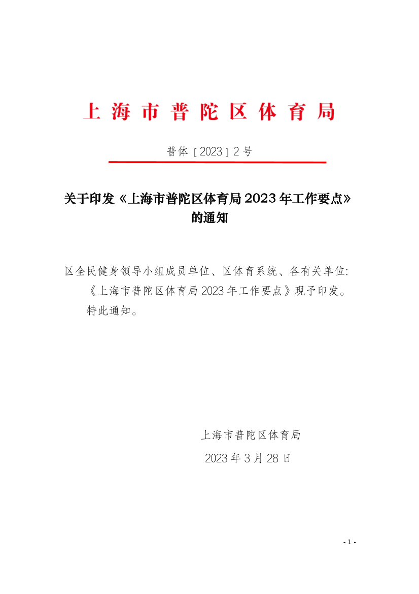 关于印发《上海市普陀区体育局2023年工作要点》的通知