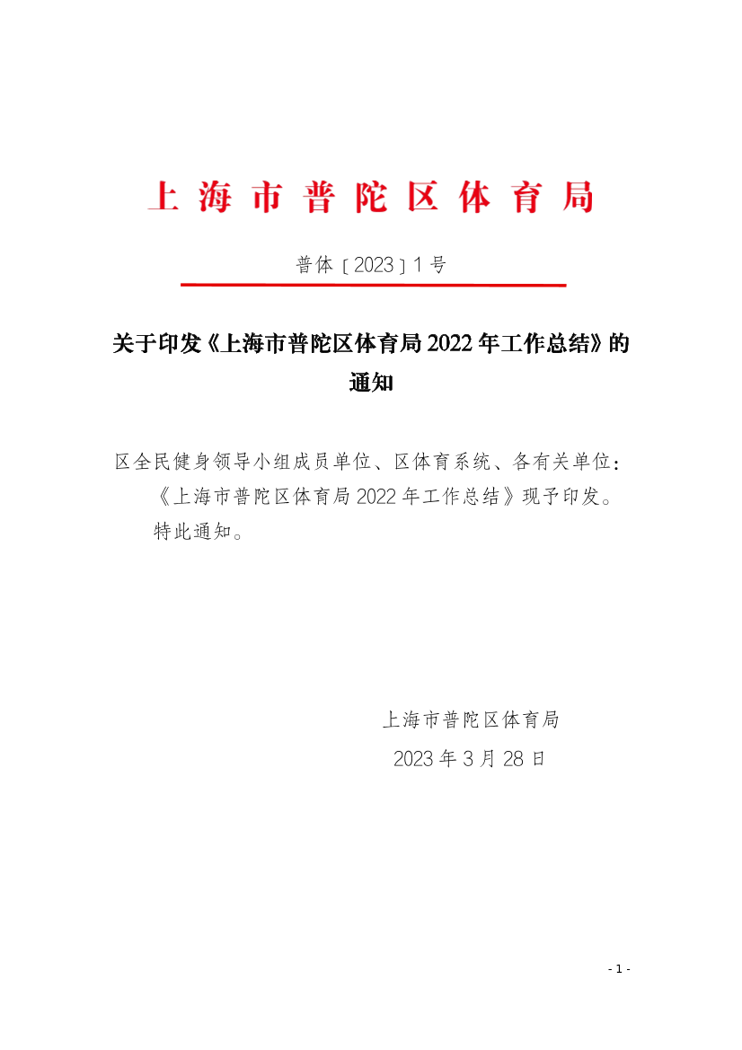 关于印发《上海市普陀区体育局2022年工作总结》的通知