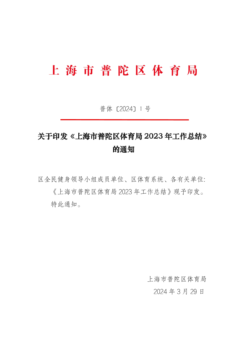 关于印发《上海市普陀区体育局2023年工作总结》的通知