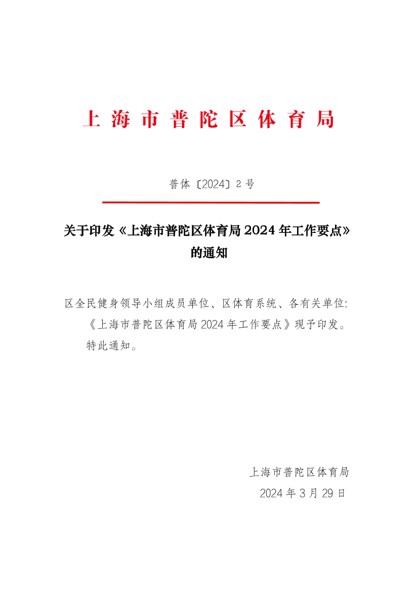 关于印发《上海市普陀区体育局2024年工作要点》的通知