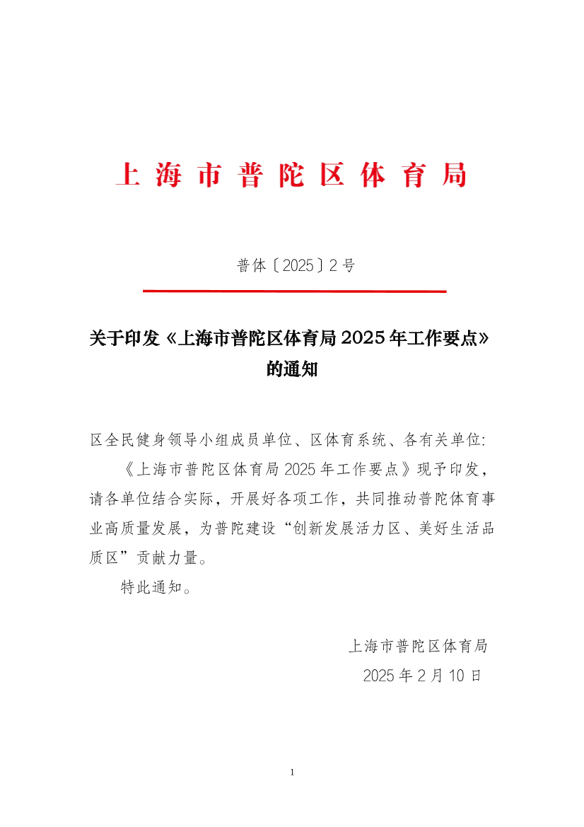 关于印发《上海市普陀区体育局2025年工作要点》的通知