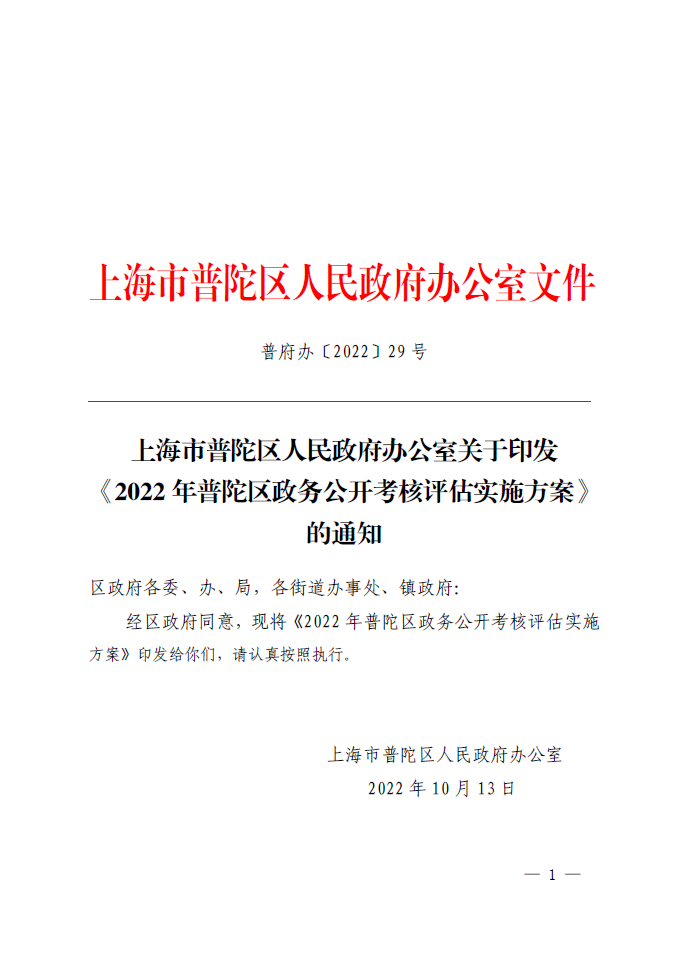 上海市普陀区人民政府办公室关于印发《2022年普陀区政务公开考核评估实施方案》的通知