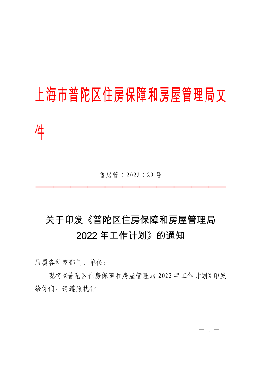 关于印发《普陀区住房保障和房屋管理局2022年工作计划》的通知