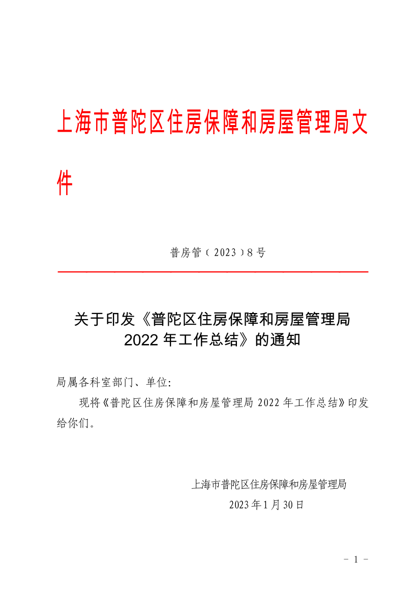 关于印发《普陀区住房保障和房屋管理局2022年工作总结》的通知