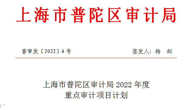上海市普陀区审计局2022年度重点审计项目计划公开
