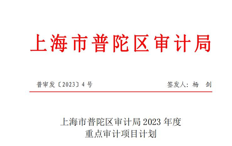 上海市普陀区审计局2023年度重点审计项目计划