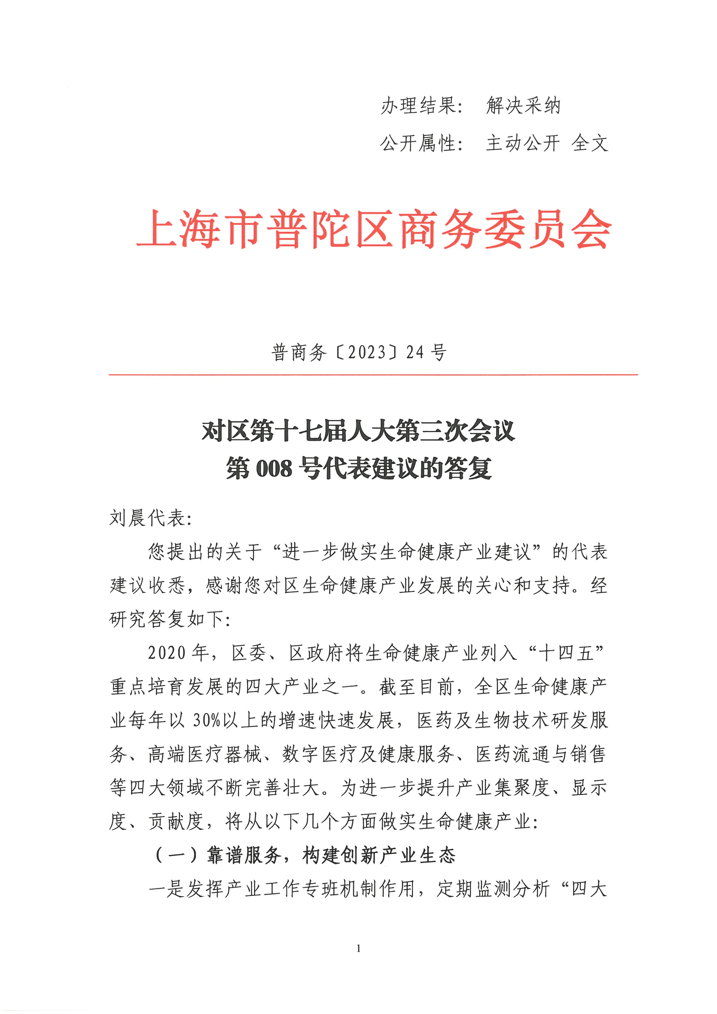 您提出的关于“进一步做实生命健康产业建议”的代表建议收悉,感谢您对区生命健康产业发展的关心和支持。经研究答复如下: