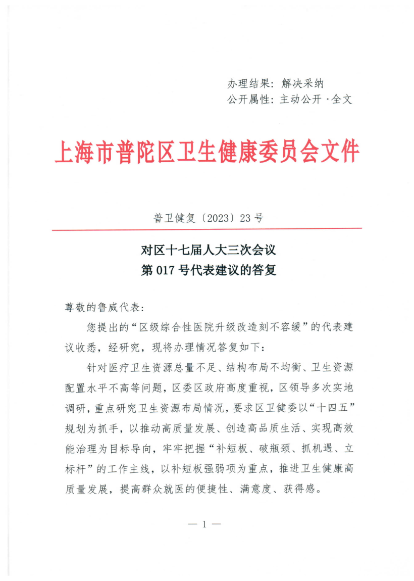 感谢您对普陀区卫生健康事业的高度关注和支持,希望您一如既往为我们的工作提出宝贵建议。