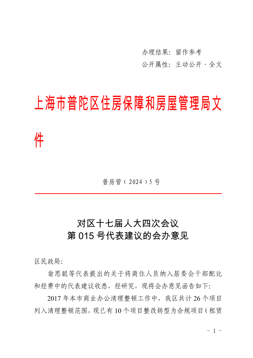 翁思聪等代表提出的关于将商住人员纳入居委会干部配比和经费中的代表建议收悉,经研究,现将会办意见函告如下:
