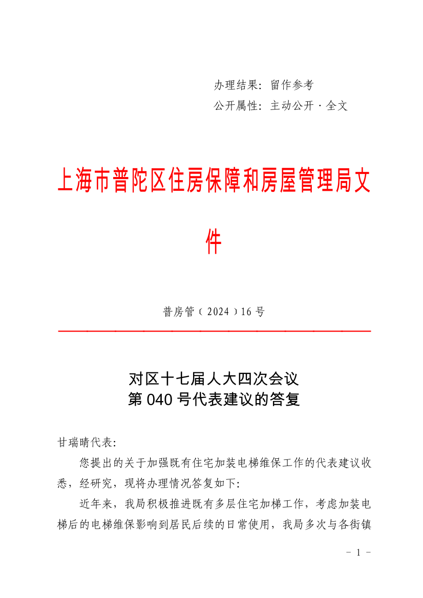 您提出的关于加强既有住宅加装电梯维保工作的代表建议收悉,经研究,现将办理情况答复如下: