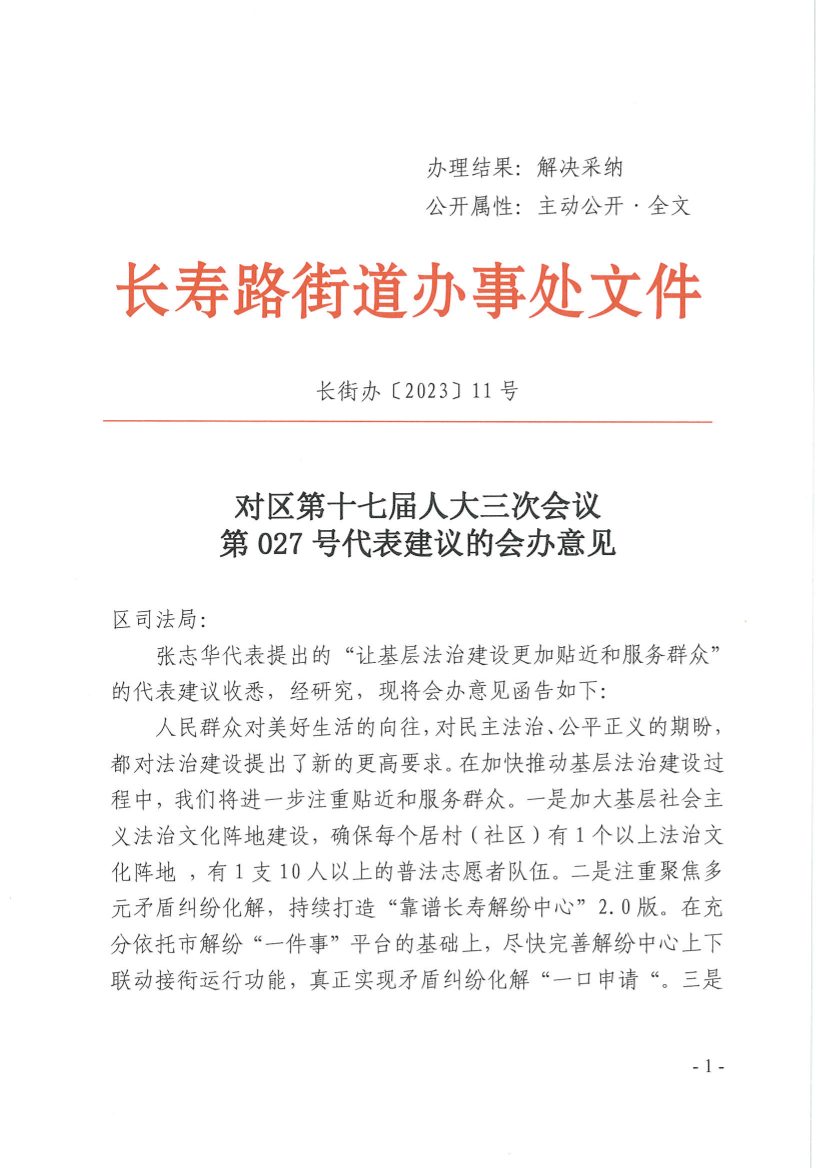 对区第十七届人大三次会议第027号代表建议的会办意见