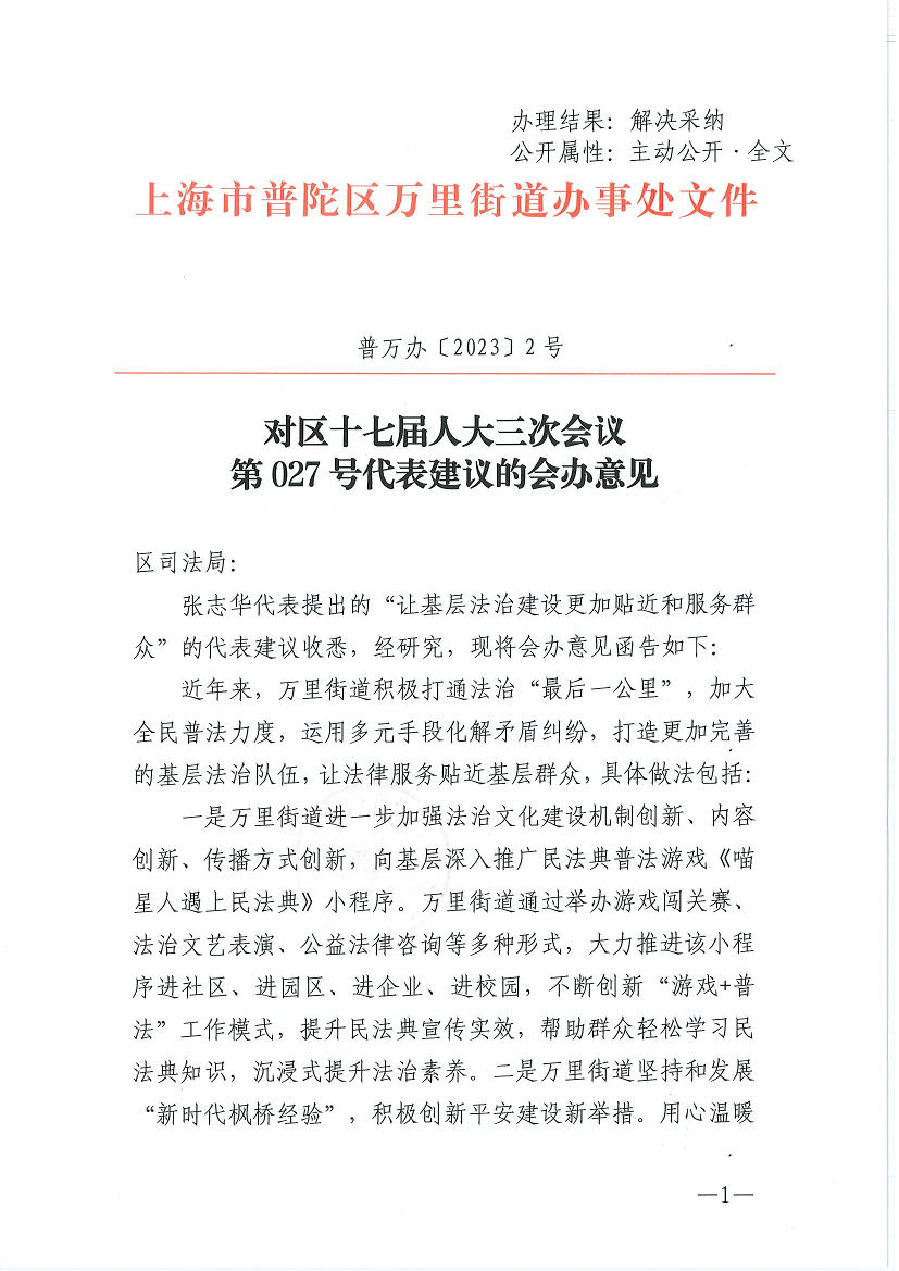 张志华代表提出的“让基层法治建设更加贴近和服务群众”的代表建议收悉,经研究,现将会办意见函告如下: