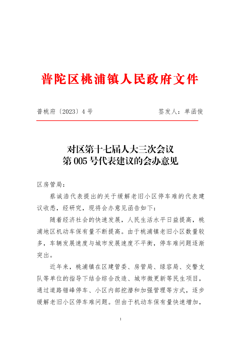 对区第十七届人大三次会议第005号代表建议的会办意见