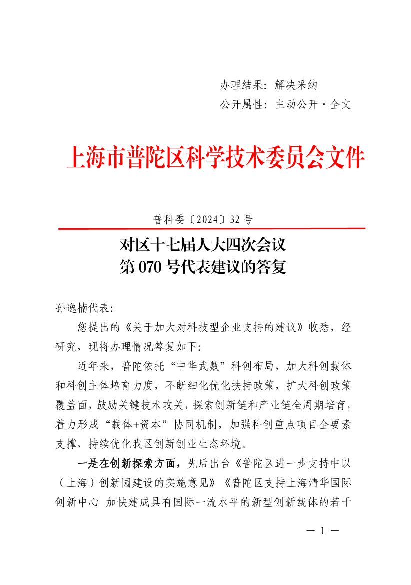 近年来,普陀依托“中华武数”科创布局,加大科创载体和科创主体培育力度,不断细化优化扶持政策,扩大科创政策覆盖面,鼓励关键技术攻关,探索创新链和产业链全周期培育,着力形成“载体+资本”协同机制,加强科创重点项目全要素支撑,持续优化我区创新创业生态环境。
