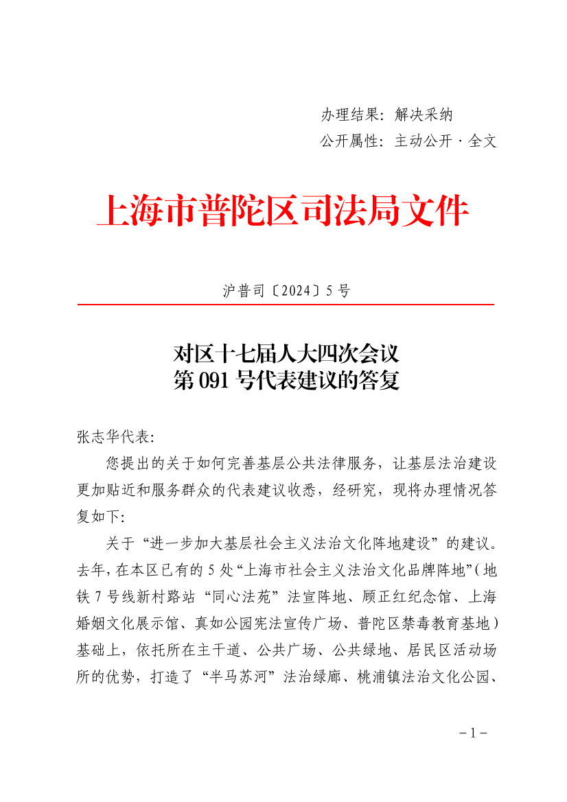 感谢您的宝贵建议,希望您继续关心和支持普陀法治建设和司法行政工作发展。