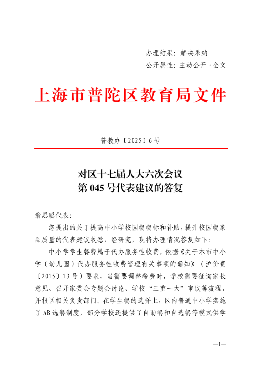 您提出的关于提高中小学校园餐餐标和补贴,提升校园餐菜品质量的代表建议收悉,经研究,现将办理情况答复如下: