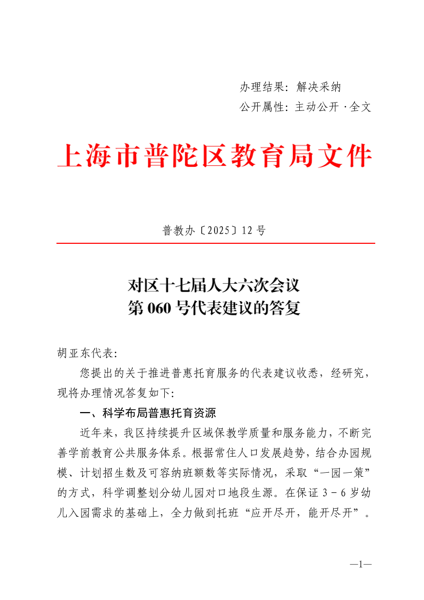 感谢您对普陀区学前教育和托育服务工作的关心与支持,我们将继续努力,不断提升普惠托育和幼儿教育服务能级,回应人民群众“上好园”的需求,为幼儿的健康成长和家庭的幸福生活提供优质服务。