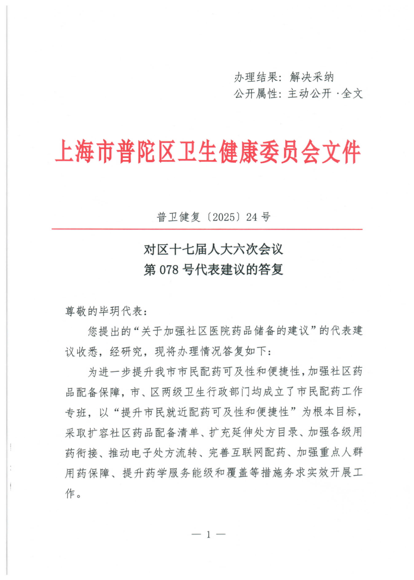您提出的“关于加强社区医院药品储备的建议”的代表建议收悉,经研究,现将办理情况答复如下: