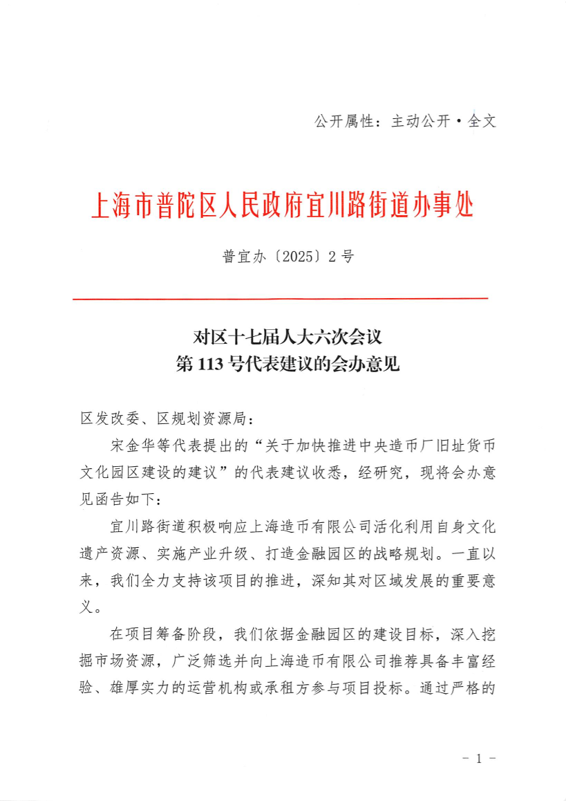 宜川路街道积极响应上海造币有限公司活化利用自身文化遗产资源、实施产业升级、打造金融园区的战略规划。一直以来,我们全力支持该项目的推进,深知其对区域发展的重要意义。