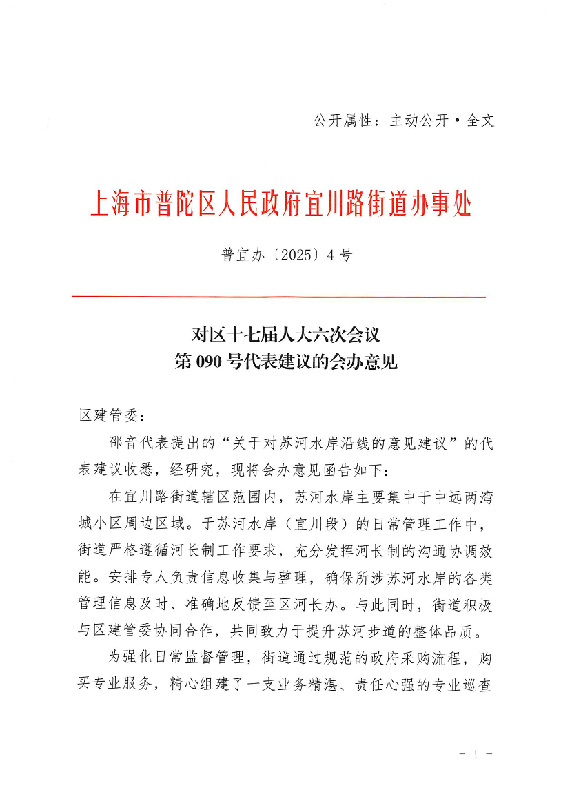 邵音代表提出的“关于对苏河水岸沿线的意见建议”的代表建议收悉,经研究,现将会办意见函告如下: