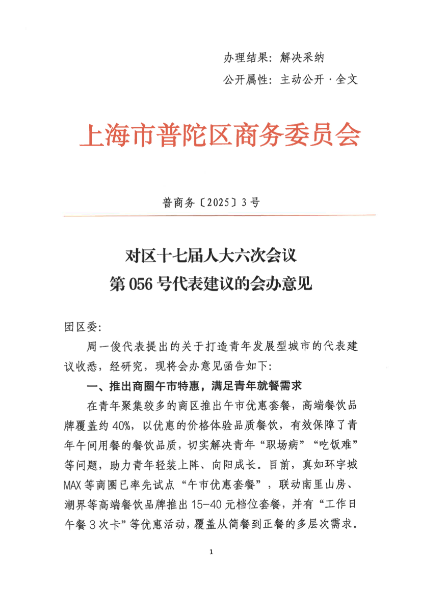 在青年聚集较多的商区推出午市优惠套餐,高端餐饮品牌覆盖约40%,以优惠的价格体验品质餐饮,有效保障了青年午间用餐的餐饮品质,切实解决青年“职场病”“吃饭难”等问题,助力青年轻装上阵、向阳成长。目前,真如环宇城MAX等商圈已率先试点“午市优惠套餐”,联动南里山房、潮界等高端餐饮品牌推出15-40元档位套餐,并有“工作日午餐3次卡”等优惠活动,覆盖从简餐到正餐的多层次需求。工作日午市客流量提升近20%,有效分流了青年群体午餐就餐压力。