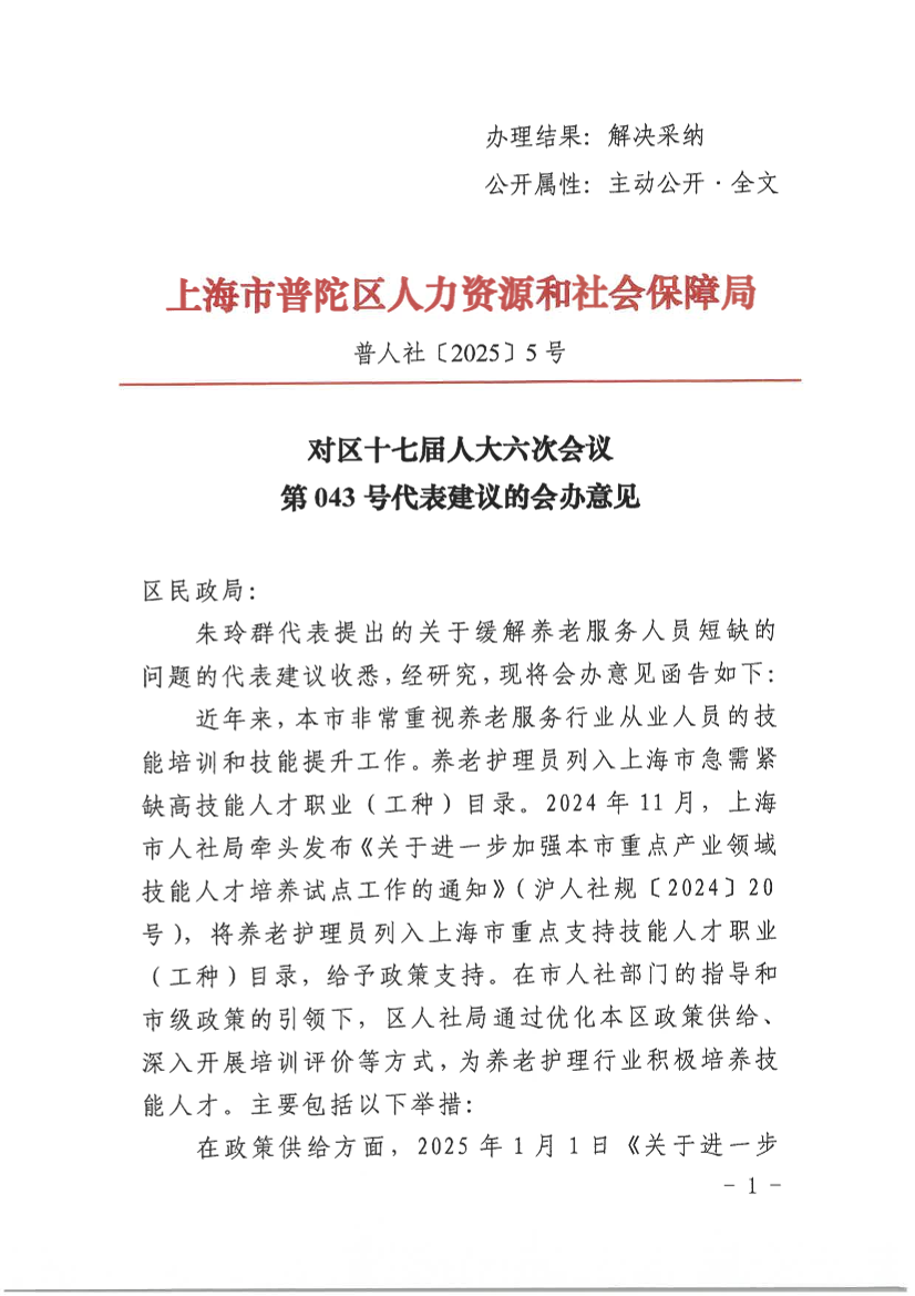 朱玲群代表提出的关于缓解养老服务人员短缺的问题的代表建议收悉,经研究,现将会办意见函告如下: